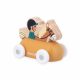 "Let's go for a fun ride on horseback!" This little wooden vehicle is suitable for children aged 12 months and over. With his rolling horse, this rider travels across snowy plains and small paths in the forest! Its shape has been specially designed for little ones, who can easily hold it by the top to make it roll. The vehicles are perfect for inventing stories and developing imagination! Babies first have fun rolling them around, then older children tell all kinds of adventures, developing their vocabulary and creativity. This little Janod car is part of our Cross Roads collection: a series of playmats with circuits, made even more fun when complemented by our cube sets and small wooden vehicles. The horse-drawn carriage is particularly suited to the Mountain Valley playmat, but goes equally well with other mats in the range. It's made from wood from sustainably managed forests. "Come on!"